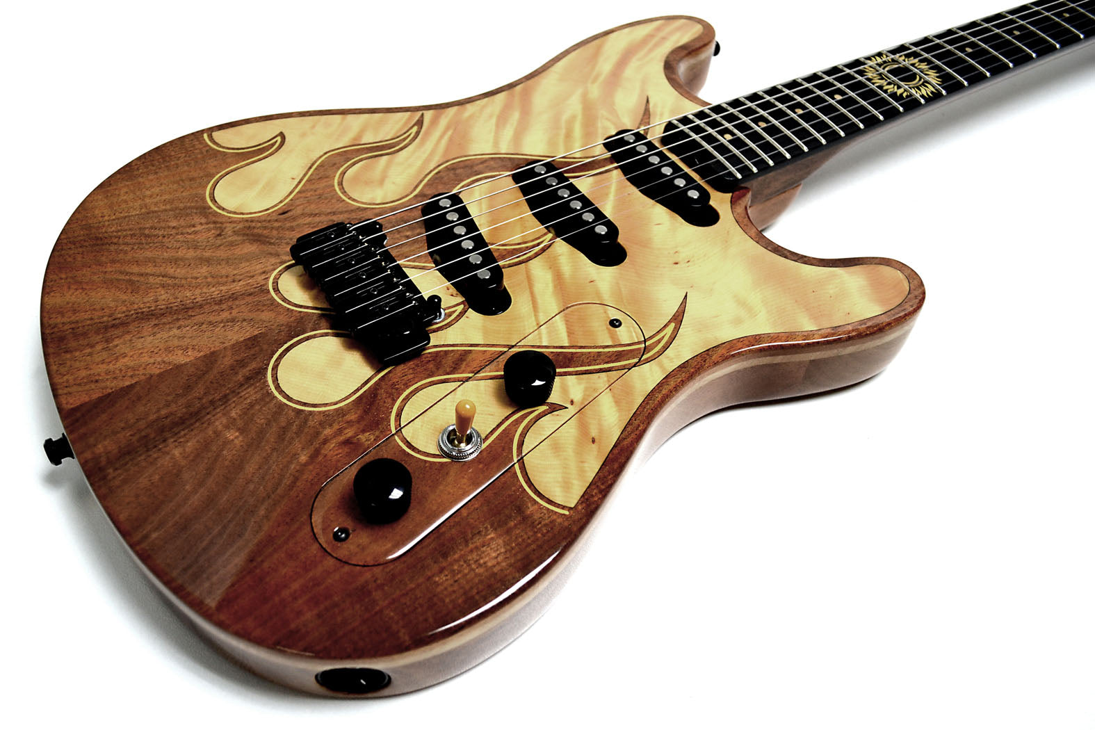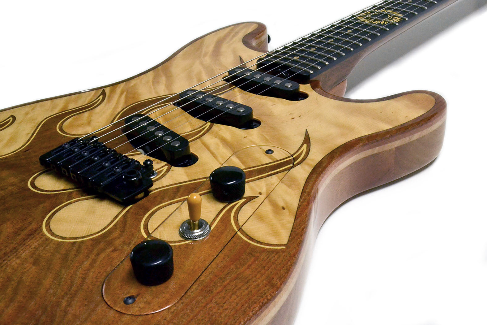 A guitar that plays like a dream and looks like fine art. The Hot Rod M.C. - Beautiful Tasmanian Blackwood with a striking flame inlaid in Huon Pine. The Freeway 6 position switch and TV Jones Starwood pickups give you access to all the classic Strat type sounds.